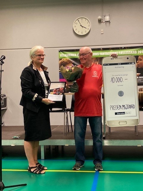 Preben var et stort smil, da han som vinder af frivillighedsprisen fik overrakt blomster, diplom og en check på 10.000 kroner af Liselott Blixt i Tune Hallen den 22. september 2021. Det skete ved det store årlige dialogmøde mellem frivillige foreninger og Social-, Sundheds- og Psykiatriudvalget.